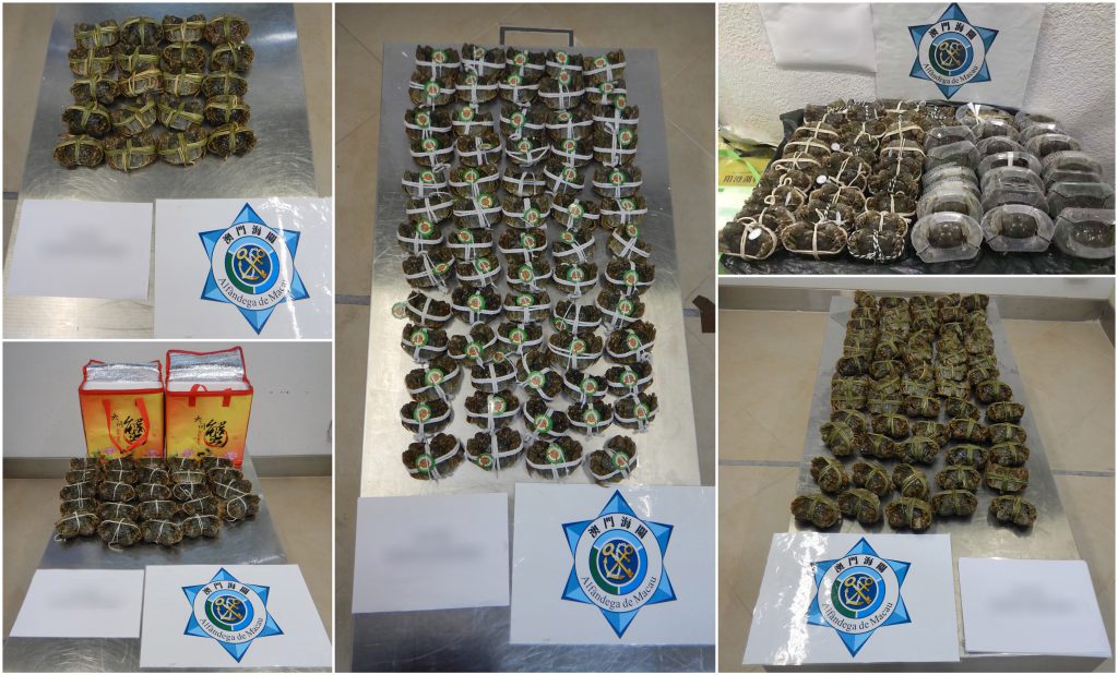 澳門國際機場海關人員查獲共5宗個案,分別在4名本澳居民及1名內地旅客的行李中查獲未經申報大閘蟹,數量由3.5公斤到10公斤不等。而關閘口岸查獲的2宗案件中,海關人員在兩台入境本澳的粵澳兩地牌車輛中,分別查獲未經申報大閘蟹28公斤及魚類食材28公斤,涉案人為2名本澳男子。