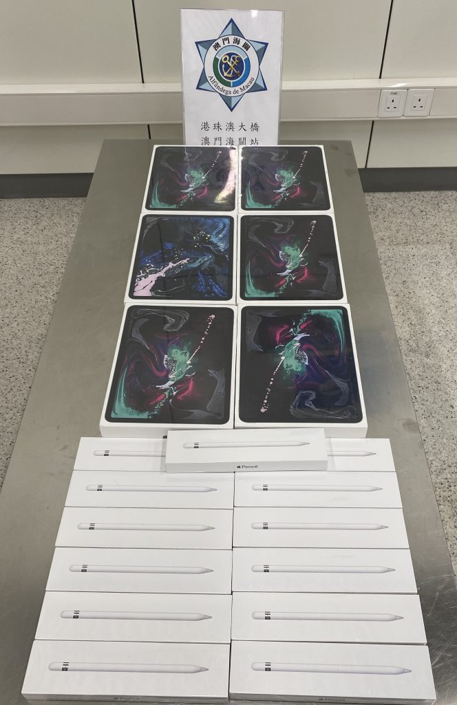 港珠澳大桥澳门海关站海关人员于本月19日晚上,在绿色通道(无须申报通道)截获一名利用手推婴儿车偷运电子产品入境的旅客,经关员详细检查,从涉案人的婴儿车及行李搜出未申报电子产品合共19盒,当中包括6部平板电脑连配件及13支智能触控笔连配件,正货价值约港币5万5千元。涉案人为一名女性香港居民,从香港来澳,由于其未能出示有效的入口申报文件,海关已根据《对外贸易法》的相关规定作出起诉,一经判罚,可科处澳门币1,000元至50,000元罚款,而查获的货物亦会宣告归澳门特别行政区所有。
