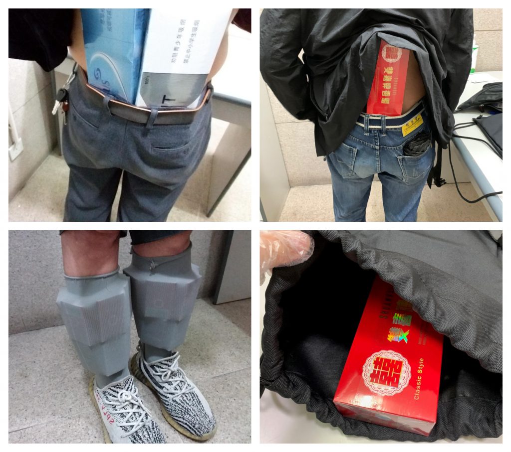 涉案者試圖將香煙藏於腰部、小腿及背包逃避海關檢查