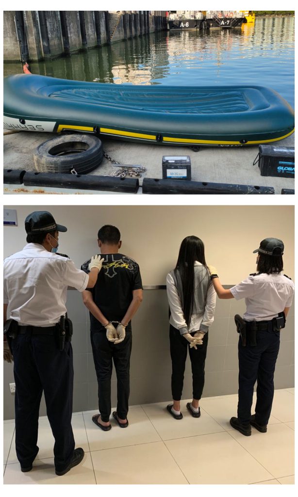 海關近日透過內地執法部門提供資料及情報分析,針對非法出入境的高發地點加強部署及開展打擊行動。16日清晨時分,在行動期間,巡邏快艇於西灣大橋附近海面發現一艘可疑橡皮艇正駛向本澳岸邊,懷疑其進行非法入境活動,隨即上前截查,並發現橡皮艇上載有1男1女,男子懷疑為蛇頭,女子則為非法入境者,海關將2人連同橡皮艇帶走作進一步調查。